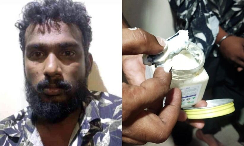 രാസലഹരിയുമായി പിടിയിലായ അഖിൽ, ഇയാൾ ഫേസ്ക്രീം കുപ്പിയിൽ ഒളിപ്പിച്ച എം.ഡി.എം.എ