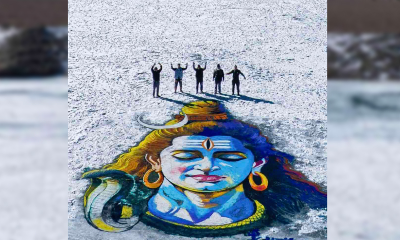 കൊടുങ്ങല്ലൂർ: കൈലാസ പർവ്വത താഴ് വരകകളിലെ ഐസുകട്ടയിൽ പെയിന്റ് അടിച്ച് ഡാവിഞ്ചി സുരേഷിന്റെ മഹാദേവ ചിത്ര വിസ്മയം. ലോകത്തിലെ തന്നെ അപൂർവ ഈ ചിത്രകലാ സൃഷ്ടിയിൽ 70 അടി വലുപ്പമുള്ള മഹാദേവ രൂപമാണ് പിറവിയെടുത്തത്. ശിവരാത്രി ആഘോഷവുമായി ബന്ധപ്പെട്ടാണ് സുരേഷും സംഘവും ലഡാക്കിലെത്തി വലുപ്പമേറിയ ചിത്രം പൂർത്തീകരിച്ചത്