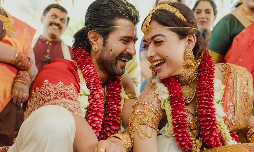 text_fieldsഏറെ നാളായി ആരാധകർ കാത്തിരുന്ന താര വിവാഹമായിരുന്നു വിജയ് ദേവരകൊണ്ടയുടെയും രശ്മിക മന്ദാനയുടെയും. ഇന്ന് ഇവരുടെ വിവാഹം കഴിഞ്ഞതോടെ, വിവാഹ ചിത്രങ്ങൾക്കായി കാത്തിരിക്കുകയായിരുന്നു ആരാധകർ. ഉദയ്പൂരിലെ ഐ.ടി.സി മെമന്റോസിൽ നടന്ന സ്വകാര്യ ചടങ്ങിലായിരുന്നു ഇവരുടെ വിവാഹം. ഇപ്പോഴിതാ, രശ്മികയും വിജയ്യും സമൂഹമാധ്യമങ്ങളിൽ വിവാഹ ചിത്രങ്ങൾ പങ്കുവെച്ചിട്ടുണ്ട്.