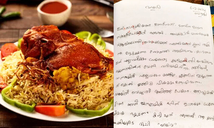 ‘എന്നാലും ആ കുഴിമന്തിയുടെ രുചി, ‘ഹയ് വാ’’; ഇഷ്ട ഭക്ഷണത്തെ കുറിച്ചുള്ള അഞ്ചാം ക്ലാസുകാരിയുടെ ഡയറിക്കുറിപ്പ്