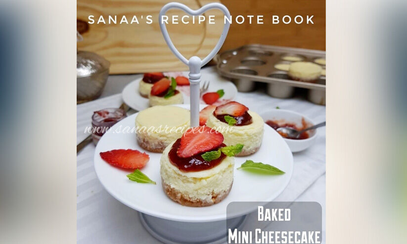 4. വീണ്ടും ഓവൻ 180 ഡിഗ്രി വരെ ചൂടാക്കി ചീസ് കേക്ക് ഏകദേശം 20 - 25 മിനിറ്റ് ബേക്ക് ചെയ്യുക. ഇത് ചീസ് കേക്കുകൾ പാനിൽനിന്ന് നീക്കം ചെയ്യുന്നതിനുമുമ്പ് ഏകദേശം 2-3 മണിക്കൂർ ഫ്രിഡ്ജിൽ തണുപ്പിക്കുക. സ്ട്രോബെറി ജാമും സ്ട്രോബെറിയും ടോപ് ചെയ്ത് വിളമ്പുക.