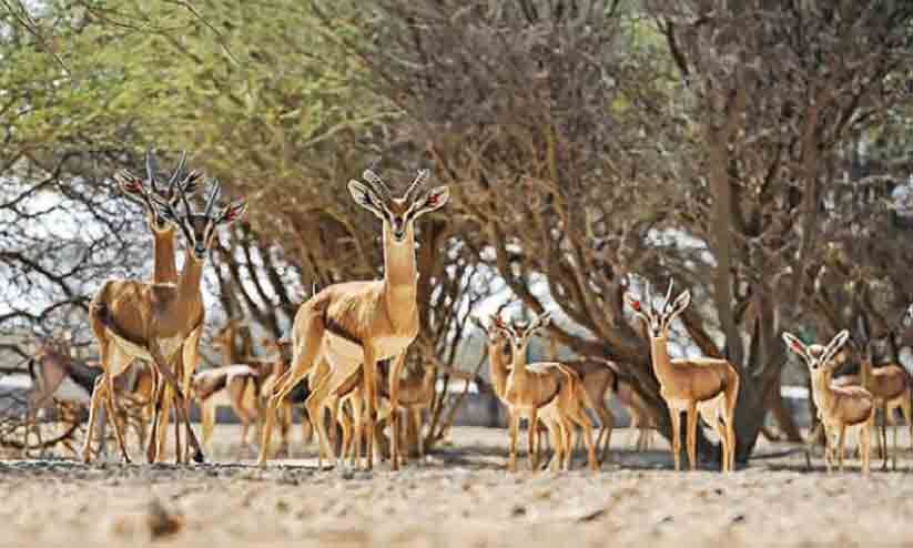 text_fieldsഒമാനിലെ മരുപ്രദേശങ്ങളിൽ കാണപ്പെടുന്ന അറേബ്യൻ സാൻഡ് ഗസല്ലെകൾ