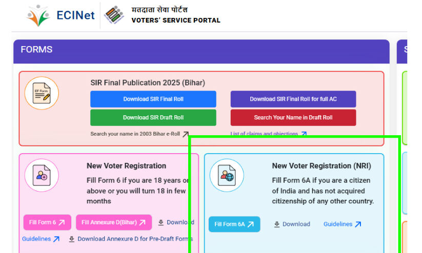 text_fieldsഇലക്ഷൻ കമീഷൻ വെബ്സൈറ്റിലെ പ്രവാസി വോട്ട് ചേർക്കാനുള്ള ടാബ്
