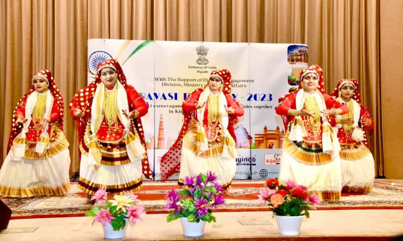 റിയാദ്: പ്രവാസി പരിചയ് വാരാഘോഷത്തിന്റെ ഭാഗമായി റിയാദ് ഇന്ത്യൻ എംബസി ആസ്ഥാനത്ത് അരങ്ങേറിയ സംസ്ഥാനതല ആഘോഷങ്ങളിൽ പ്രത്യേകം ശ്രദ്ധിക്കപ്പെട്ട് കേരളോത്സവം. ഡൽഹിയും കേരളവും ഉൾപ്പെടെ അഞ്ചു സംസ്ഥാനങ്ങളുടെ കലാസാംസ്കാരിക പരിപാടികളാണ് അരങ്ങേറിയത്. അംബാസഡർ തിരി തെളിച്ചുണർത്തിയ വേദിയിൽ വിവിധ നൃത്തനൃത്യങ്ങളും കഥകളിയും ഓട്ടൻതുള്ളലുമടക്കം തനത് കലാരൂപങ്ങൾ ഭാവപൂർണതയോടെയും വർണാഭമായും അവതരിപ്പിച്ചാണ് കേരളം കാണികളെ കൈയിലെടുത്തത്.