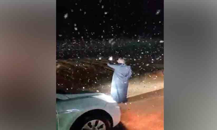text_fieldsതബൂക്ക്: സൗദി വടക്കുപടിഞ്ഞാറൻ അതിർത്തി മേഖലയായ തബൂക്കിലെ അൽ ലോസ് പർവതനിരകളിൽ മഞ്ഞു പെയ്യുന്നു. ആകാശത്തുനിന്ന് പഞ്ഞി പറന്നിറങ്ങുന്നതുപോലെയാണ് മഞ്ഞുവീഴ്ച. മഴക്കൊപ്പമാണ് മഞ്ഞെത്തിയത്. ഒപ്പം കനത്ത മൂടൽ മഞ്ഞും ശക്തമായ കാറ്റും ഉണ്ടാകുന്നുണ്ട്. ബുധനാഴ്ച താപനില നാല് ഡിഗ്രി സെൽഷ്യസ് വരെ താഴ്ന്നിരുന്നു. ചിലയിടങ്ങളിൽ ശക്തമായ കാറ്റ് മൈനസ് ഡിഗ്രിയിലേക്ക് താപനിലയെ നയിച്ചു.