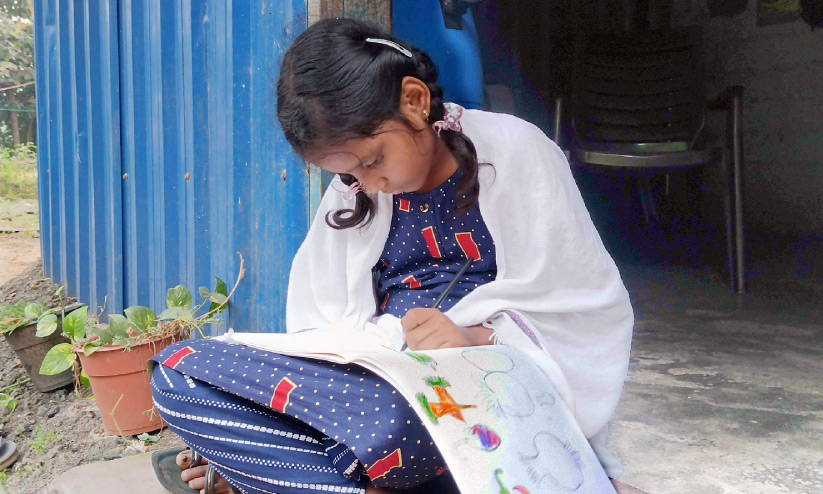 text_fieldsവീട്ടിലെത്തിയ വിനോദിനി ചിത്രം വരക്കുന്നു