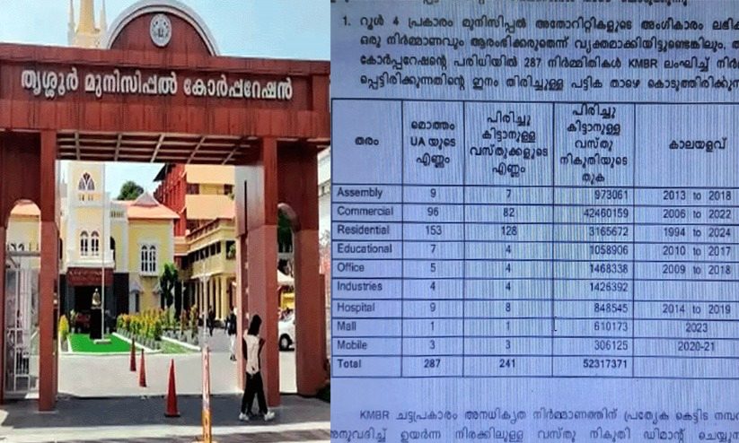 അനധികൃത കെട്ടിട നിർമാണം: തൃശൂർ കോർപറേഷന് നഷ്ടമായത് 5.23 കോടി