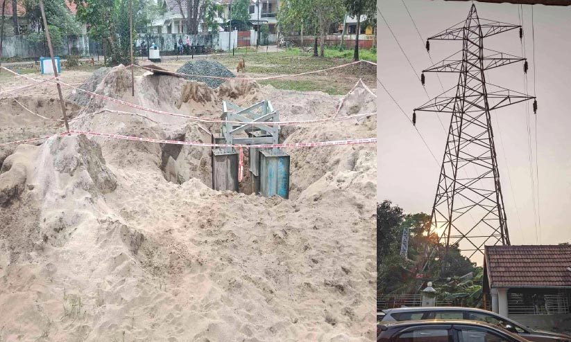 നിർമാണ പ്രവർത്തനം നടത്തുന്നു, അരൂർ എസ്.എൻ നഗറിന് അരികിലുള്ള ടവർ ലൈൻ
