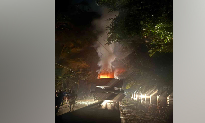 ട്രയിലറിൽ കൊണ്ടുവന്ന ഹിറ്റാച്ചി വൈദ്യുതി ലൈനിൽ തട്ടി തീപിടിച്ചു
