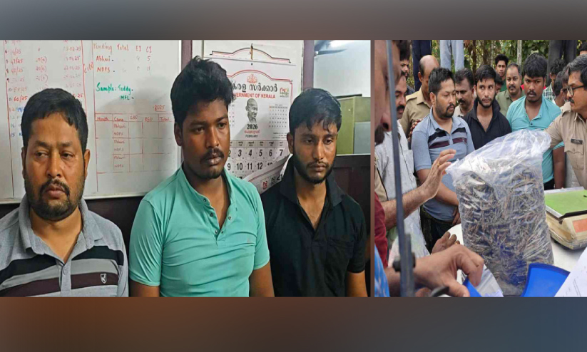 ഒമ്പതര കിലോ കഞ്ചാവുമായി മൂന്നു ബംഗാൾ സ്വദേശികളെ എക്സൈസ് സംഘം പിടികൂടി