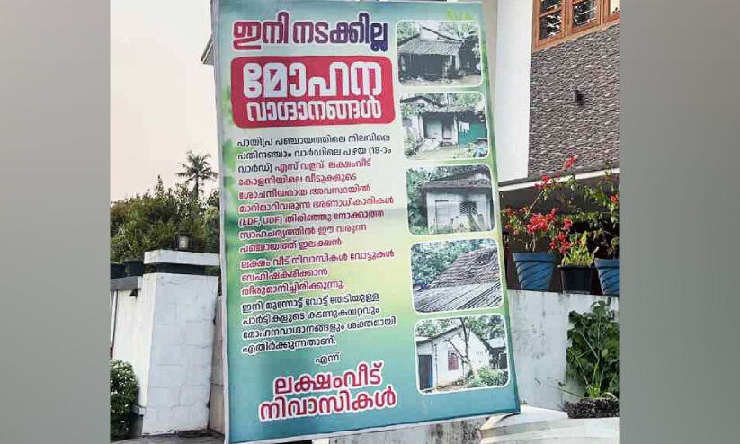 text_fieldsവോട്ടു ചോദിച്ചു വരണ്ടന്നു കാണിച്ച് ലക്ഷംവീട് നിവാസികൾ സ്ഥാപിച്ച ബോർഡ്