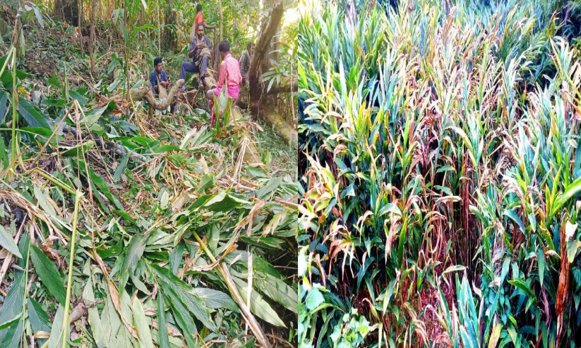 text_fieldsകാട്ടാന കൂട്ടങ്ങൾ നശിപ്പിച്ച ഏലത്തോട്ടം, ഉണക്ക് ബാധിച്ച ഏലത്തോട്ടങ്ങളിൽ ഒന്ന്