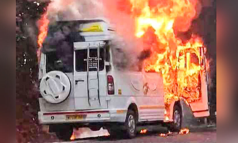 വിനോദ സഞ്ചാരികളുമായി വന്ന വാഹനം കത്തി