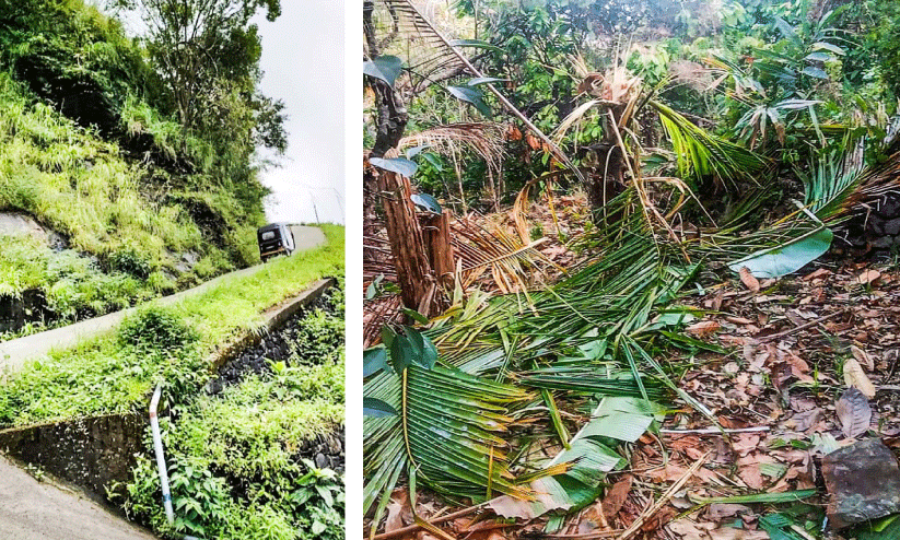 text_fieldsകോളനിയിലേക്കുള്ള റോഡ്, കാട്ടാന നശിപ്പിച്ച തെങ്ങ്