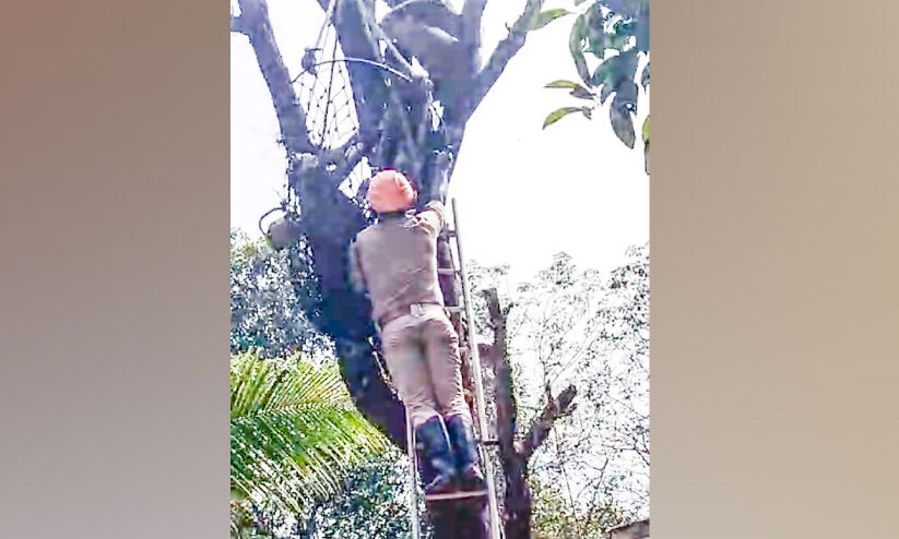 രക്തസമ്മർദം താഴ്ന്നു; മരത്തിന് മുകളിൽ കുടുങ്ങിയ തൊഴിലാളിയെ താഴെയിറക്കി