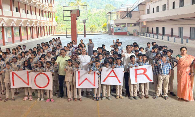 വിദ്യാർഥികളും ചേർന്ന് നോ വാർ ബോർഡ് കൈയിലേന്തി