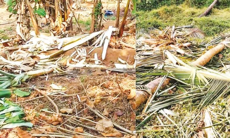 വീട്ടുപറമ്പിലെ വാഴ, കപ്പ തുടങ്ങിയ കാർഷികവിളകൾ കാട്ടാന നശിപ്പിച്ച നിലയിൽ