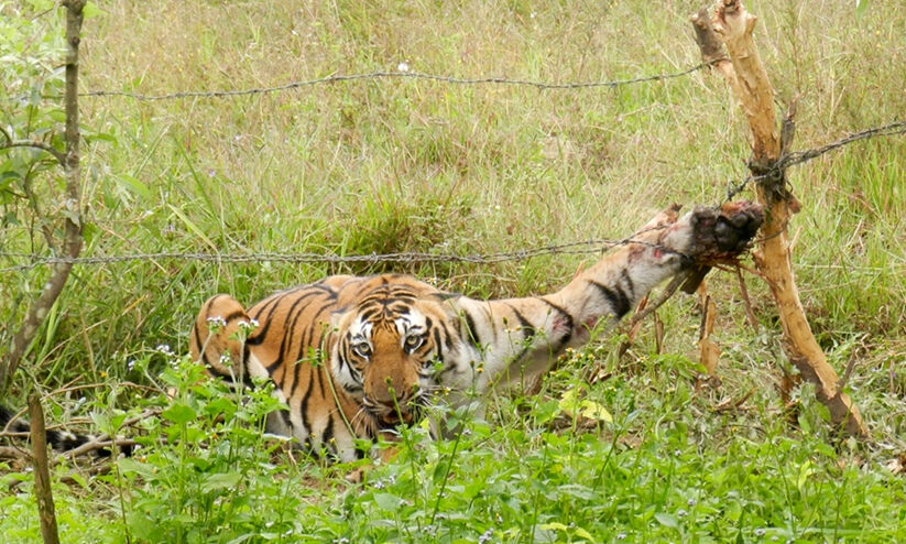 കൃഷിയിടത്തിലെ മുള്ളുകമ്പി വേലിയിൽ കടുവ; നിയമ നടപടിയുമായി വനം വകുപ്പ്