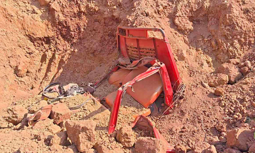 text_fieldsസുധീഷിന്റെ മരണത്തിനിടയാക്കിയ ലോറി തകർന്ന് മണ്ണിനടിയിലായ നിലയിൽ