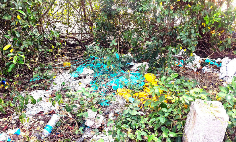 പഴയങ്ങാടി ഏഴോം മുട്ടുകണ്ടി പാതയോരത്ത് മാലിന്യം തള്ളിയ നിലയിൽ