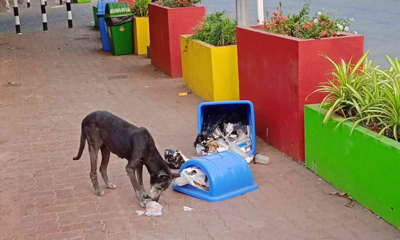 എം.ജി റോഡിൽ ബി.ഇ.എം.പി സ്കൂളിന് മുന്നിൽ സ്ഥാപിച്ച ചവറ്റു വീപ്പ തള്ളിയിട്ടും നായ്ക്കൾ മാലിന്യം വാരിവലിച്ചിടുന്നത് പതിവുകഴ്ചയാണ്. വീപ്പകൾ സ്ഥാപിച്ചതിനാൽ മാലിന്യം ജനം റോഡരികിൽ വലിച്ചെറിയുന്നതിൽനിന്ന് കാര്യമായ മാറ്റം വന്നിട്ടുണ്ട്. ഇത് നല്ല കാര്യമാണെങ്കിലും വീപ്പകൾ നായ്ക്കൾ തള്ളിയിടാതെ സുരക്ഷിതമായിവെക്കുന്ന കാര്യത്തിൽ അധികൃതർ ശ്രദ്ധപുലർത്തണമെന്നാണ് നാട്ടുകാരുടെ ആവശ്യം.