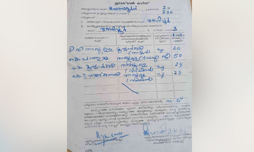 തൃക്കരിപ്പൂർ ചൊവ്വേരിയിലെ ഖാദർ കൂലേരിയുടെ വീട്ടിൽനിന്നാണ് ഇലക്ടറൽ കാർഡ് കണ്ടെത്തിയത്. എൺപതുകളിൽ വോട്ട് ചെയ്ത ഇവർക്ക് 2025ലെ പട്ടികയിൽ പേരുണ്ട്. പക്ഷേ, 2002ലാവട്ടെ കുടുംബം അപ്പാടെ പട്ടികയിലില്ല. അക്കാലത്ത് ആളുടെ പേരും ബന്ധുവിന്റെ പേരും പൂർത്തിയായ വയസ്സും മാത്രമാണ് വോട്ടർപട്ടികയിൽ ഇടംപിടിക്കാൻ വേണ്ടിയിരുന്നത്.