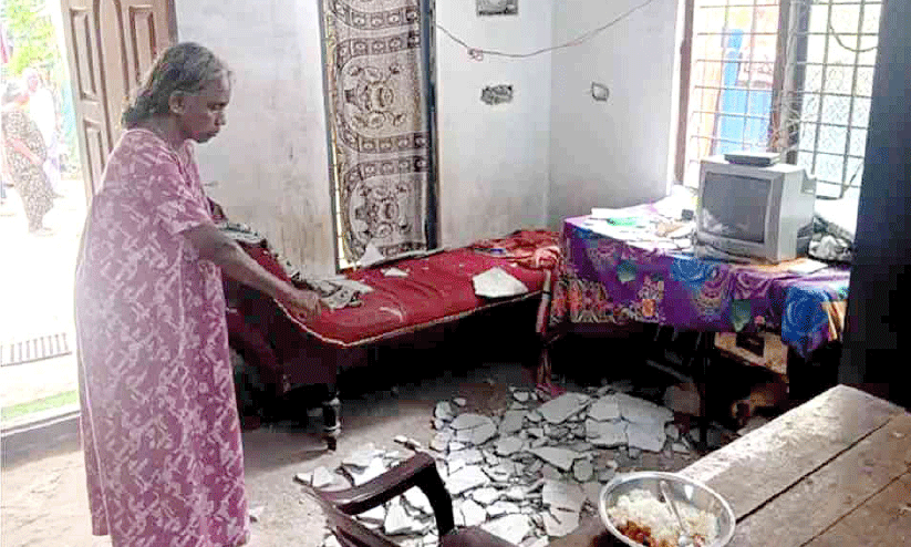 വീടിന്റെ മേൽക്കൂരയിലെ സിമന്റ് അടർന്നു വീണ് വീട്ടമ്മക്ക് പരിക്ക്