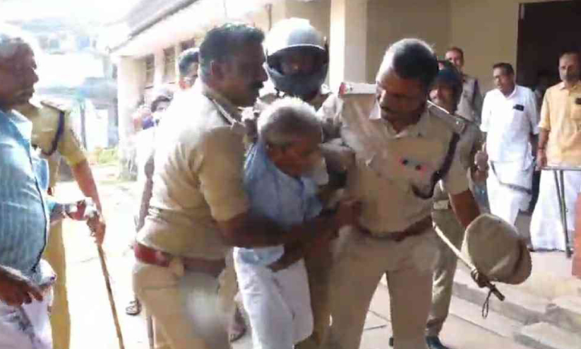 സംഘർഷത്തിൽപെട്ട ആളെ പൊലീസ് ബലം പ്രയോഗിച്ച് നീക്കുന്നു