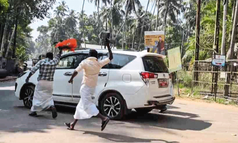 മന്ത്രി വി. അബ്ദുറഹ്മാന് കരിങ്കൊടി കാണിക്കുന്നു