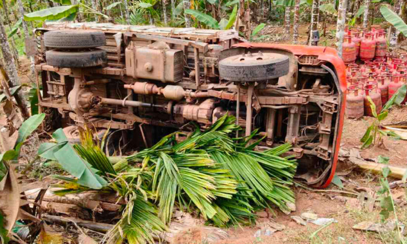 ഒരു വീട്ടിൽ സിലിണ്ടർ നൽകിയ ശേഷം അരിയകുണ്ട് ഭാഗത്തേക്ക് പുറപ്പെടാനൊരുങ്ങിയ ലോറി ബ്രേക്ക് ജാമായതിനെ തുടർന്ന് നിയന്ത്രണം വിട്ട് കുത്തനെയുള്ള ഇറക്കത്തിലൂടെ പിന്നോട്ട് വന്ന് റോഡിന്റെ താഴ്ചയിലെ പാടത്തേക്ക് മറിയുകയായിരുന്നു. വാതക സിലിണ്ടറുകൾക്ക് ലീക്ക് അനുഭവപ്പെടാത്തതിനാൽ വൻ അപകടം ഒഴിവായി.