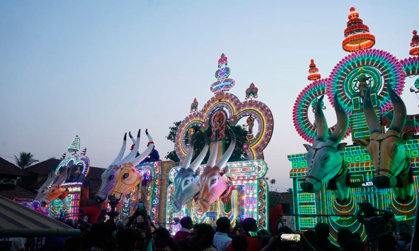 text_fieldsചെർപ്പുളശ്ശേരി പുത്തനാൽക്കൽ കാളവേലയോടനുബന്ധിച്ച് ഒരുക്കിയ ഇണക്കാള കോലങ്ങൾ