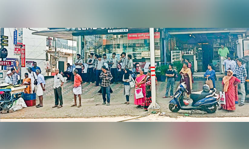 text_fieldsപത്തിരിപ്പാല ടൗണിൽ പാതയോരത്ത് ബസ് കാത്തുനിൽക്കുന്ന യാത്രക്കാർ