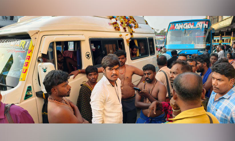 ബസിനെ പിന്തുടര്ന്ന് എത്തിയ അയ്യപ്പഭക്തര് സഞ്ചിരിച്ചിരുന്ന ട്രാവലര് ഇരിങ്ങാലക്കുട ബസ് സ്റ്റാൻഡില് ബസിന് കുറുകെ വാഹനമിട്ട് പണം ആവശ്യപ്പെട്ട് തടഞ്ഞ് നിര്ത്തുകയായിരുന്നു. കന്നട ഭാഷ വശമുള്ള യാത്രികനായ ഒരാളുടെ സഹായത്തോടെ ഏറെനേരം ഇരുവിഭാഗവും തര്ക്കം തുടര്ന്നു. ബസിന്റെ റൂട്ട് സമയം തെറ്റിയതിനാല് ബസിലെ യാത്രികരെ വേറെ ബസുകളില് കയറ്റി ആയക്കുകയും ചെയ്തു.