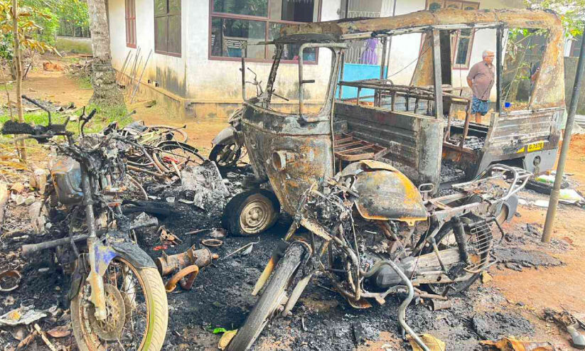 ബി.ജെ.പി പ്രവർത്തകന്റെ വീട്ടിൽ പാർക്ക് ചെയ്തിരുന്ന വാഹനങ്ങൾ കത്തിച്ചു