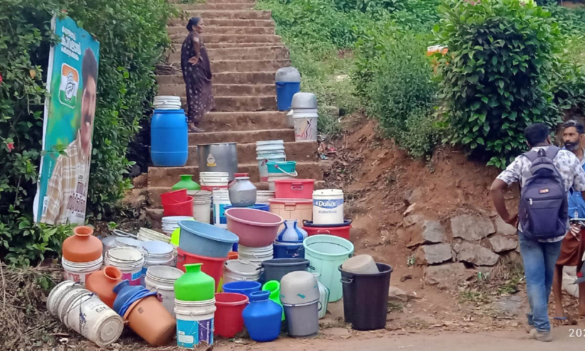 text_fieldsജലവിതരണം മുടങ്ങിയതോടെ വാഹനങ്ങളില് വെള്ളമെത്തുന്നതും കാത്തിരിക്കുന്നവർ, ഇടഗുനിയിൽ നിന്നുള്ള ദൃശ്യം