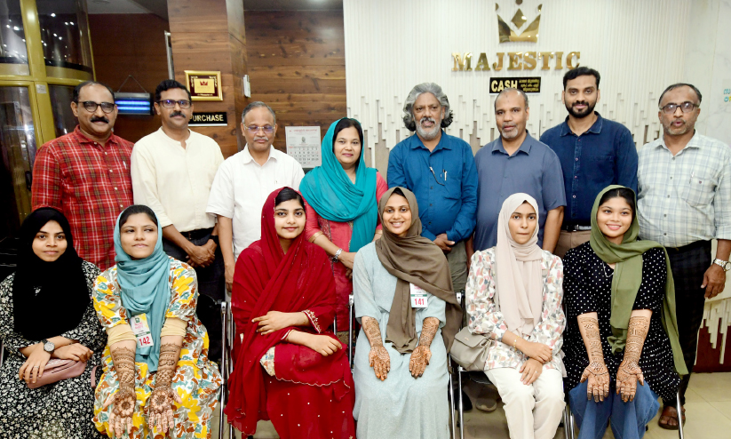 ‘മാധ്യമം’ ഹാർമോണിയസ് കേരളയോടനുബന്ധിച്ച് തിരൂർ മെജസ്റ്റിക് ജ്വല്ലറിയുമായി സഹകരിച്ച് സംലടിപ്പിച്ച മെഹന്തി ഫെസ്റ്റിനെത്തിയ മത്സരാർഥികൾ ഫോട്ടോ -പി. അഭിജിത്ത്
