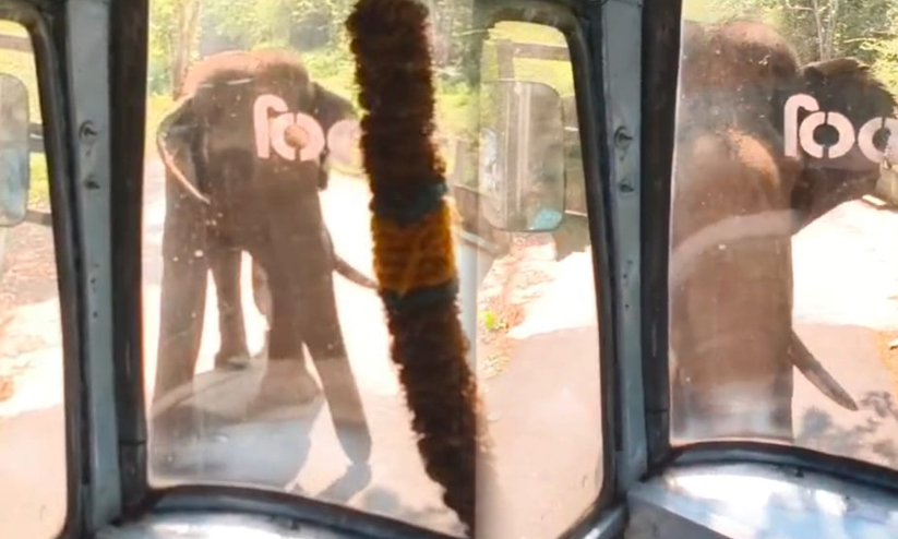 കെ.എസ്.ആർ.ടി.സി ബസിന് നേരെവന്ന് ഗ്ലാസ് കുത്തി തകർക്കാൻ ശ്രമിച്ച് കാട്ടാന; ഭീതിയിലായി യാത്രക്കാർ