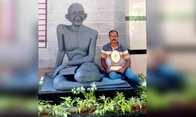 മഹാത്മാഗാന്ധിയുടെ പ്രതിമകൾ തീർത്ത് ബൈജു