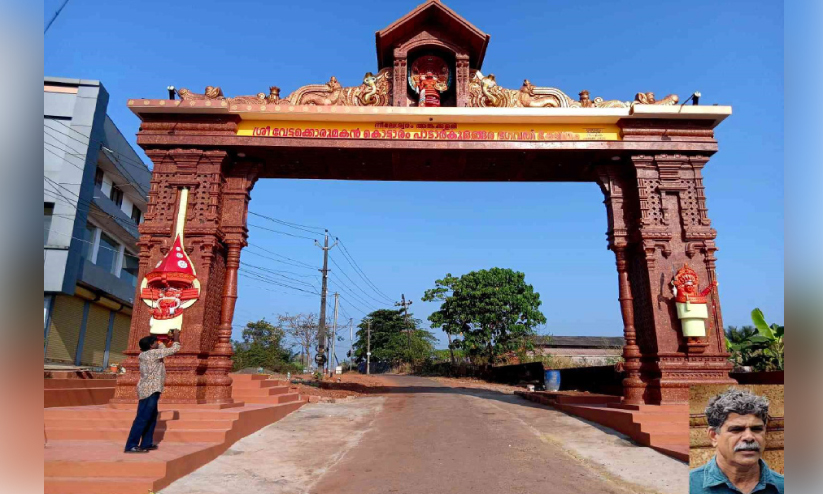 വിസ്മയങ്ങളൊരുക്കി ചെങ്കല്ലിൽ കടഞ്ഞെടുത്ത ക്ഷേത്രകവാടം