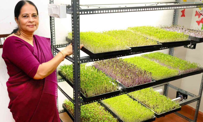 റിട്ട. അധ്യാപിക മൈക്രോ ഗ്രീന് ഭക്ഷണ ശീലങ്ങൾ പഠിപ്പിക്കുന്ന തിരക്കിലാണ്