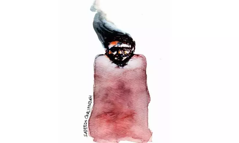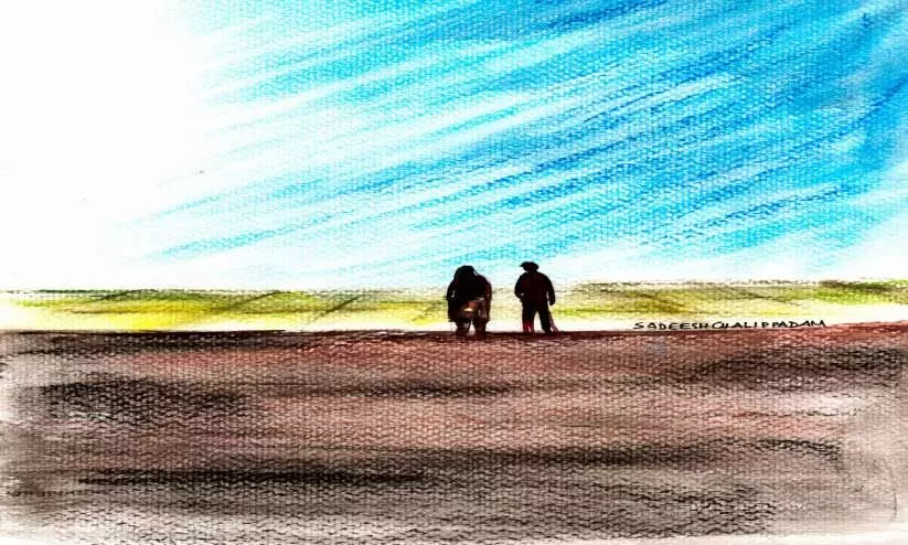 ഏറെ നേരത്തിനുശേഷം ചായുന്ന സൂര്യനെ കാണാന് അവര് രണ്ടുപേരും അധ്യാപകരുടെ ക്വാർേട്ടഴ്സിനപ്പുറത്തുള്ള കുഞ്ഞ് മലക്ക് മുകളില് ഇരിക്കുമായിരുന്നു. പോകുന്ന വഴിയില് സ്ത്രീകള് കപ്പ ഉണക്കിയത് വാരിവെക്കുന്നുണ്ടാകും. അന്നൊരിക്കല് മുറിയുന്ന ചൂടില്നിന്നും ഭൂമി പതുത്ത തീനാളങ്ങളിലേക്ക് ചാഞ്ഞപ്പോള് അവര് ചുറ്റും തെളിയുന്ന വെളിച്ചത്തിലേക്ക് നോക്കിയിരുന്നു. “ക്ലാസുകള് അടച്ച് എല്ലാരും വീട്ടില് പോയല്ലോ... നമ്മളെപ്പോലെ കുറച്ചുപേര് ഇവിടെ ഇങ്ങനെ ഉണ്ടാവും അല്ലേ...” യൂനിവേഴ്സിറ്റിയില് പലരും വീടുകളിലേക്കു പോയ സമയം. അവള് മറുപടി ഒന്നും പറഞ്ഞില്ല. അയാള് തുടര്ന്നു, “നാളെ അച്ഛന് ഈ വഴി പോകും എന്നു പറഞ്ഞിരുന്നു.” “എപ്പോ?” “അമ്മോ... അറീല്ല. രാവിലെ ആകും എന്നു പറഞ്ഞു. കണ്ണൂരുന്ന് രാത്രി നല്ലോണം വൈകി പുറപ്പെട്ട മൂപ്പര് പുലര്ച്ച ആണ് ഈ വഴി കടക്കുക. ലോറീന്റെ കിളി കൂടെ ണ്ടാകും എന്നാ പറഞ്ഞേ. ഇരുട്ടത്താണെല് വിളിക്കില്ല എന്നു പറഞ്ഞു.’’ “ഉം” അയാള് അകലെ നിന്നും കണ്ണെടുക്കാതെ തുടര്ന്നു.“ചെലപ്പോ ഞാന് ഒന്നു രണ്ടു ദൂസം കഴിഞ്ഞ് നാട്ടില് ഒന്നു പോയിട്ട് വരും. അമ്മേനെം കണ്ടിട്ടു കുറച്ചായി.’’ (നിശ്ശബ്ദത) ‘‘നീ പോകുന്നില്ലേ?” അവള് പെെട്ടന്നു ഒന്നുലഞ്ഞപോലെ തോന്നി. “അവിടെ അമ്മമ്മ ഇല്ലല്ലോ. അവര് ചെറിയമ്മയുടെ അടുത്താണ്, അവിടെ പോയാലും ഒറ്റക്കാവും.” അവര് മിണ്ടാതെ ഇരുന്നപ്പോള് രാത്രി മെല്ലെ പതഞ്ഞരമ്പി.