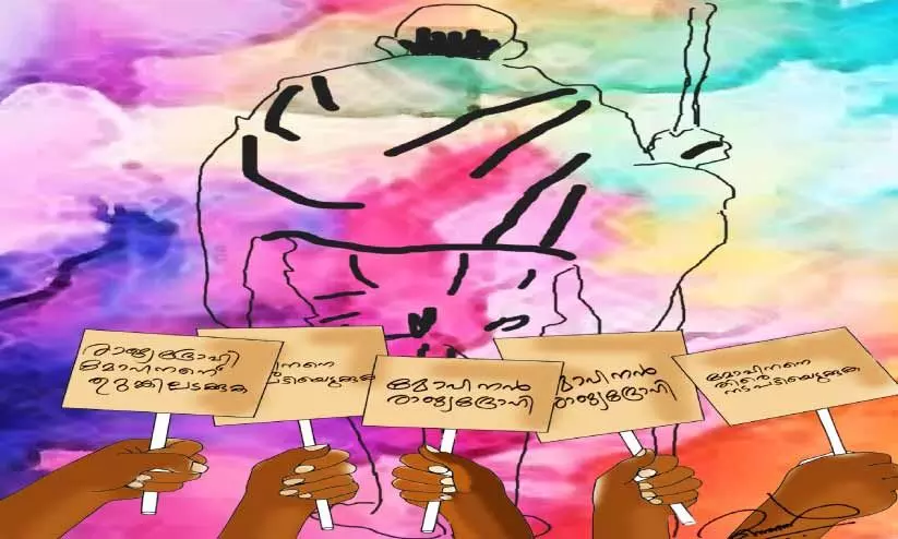 എസ്.ഐ ജീപ്പിൽ കയറി പോയപ്പോൾ കോൺസ്റ്റബിൾ നാരായണേട്ടൻ അടുത്തേക്ക് വന്ന് ഒരു സ്വകാര്യംപോലെ പറഞ്ഞു... ‘‘എടാ, മറ്റൊരു കാര്യം കൂടിയുണ്ട്. ആ പ്രതിമ ഇരിക്ക്ണ സ്ഥലമില്ലെ, ആ സ്ഥലം വിൽക്കാൻ കുടുംബത്തിന് പദ്ധതിയുണ്ട്. പ്രതിമയാണ് തടസ്സം. നമ്മുടെ നാടിന് അഭിമാനമായിരുന്ന ഗാന്ധിയൻ കുമാരന്റെ ഓർമകളും സ്വപ്നങ്ങളും കുടുംബത്തിന് ഇപ്പോൾ ഭാരമാണ്. പ്രതിമയിരിക്കുന്നത് പത്തു സെന്റ് സ്ഥലത്താ. അതും നഗരത്തിന്റെ ഒത്ത നടുക്ക്.’’