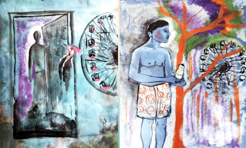 “ഇതാണ് ഫെറിസ് വീൽ അഥവാ ജയന്റ് വീൽ. മലയാളത്തിൽ ഇതിനെ ആകാശത്തൊട്ടിൽ എന്ന് വിളിക്കും...” അച്ഛൻ രഘുവിനെക്കാളും ചെറിയ ഒരു കുട്ടിയെപ്പോലെ അതിനെ നോക്കി ചിരിച്ചു. പച്ചയും ഓറഞ്ചും വെളിച്ചങ്ങൾക്കിടയിലൂടെ തൊട്ടിലുകളും ആളുകളും അങ്ങുമിങ്ങും ആടി. എല്ലാവരുടെയും മുഖത്ത് ഒരേ ചിരി, ഒരേ ഭയം. ഒരുമിച്ച് ഒരു യാത്ര പോകുകയാണെന്ന് തോന്നിപ്പിക്കുന്നത്രയും ഒരുമ.