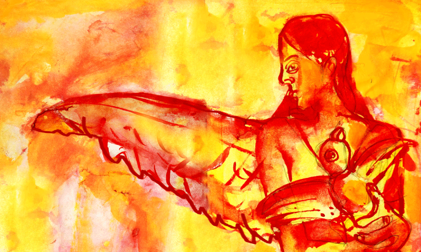കൈവിരലുകൾ കോർത്ത് ഞെരിച്ച് അവൾ ആലോചനയിലാണ്ടു. ‘‘ബാപ്പുവിന്റെ നെഞ്ചിൽ ചോരനിറമുള്ള ഒരു പൂവ് വിടരുമെന്ന് പറഞ്ഞപ്പോൾ അവരുടെ കണ്ണ് രണ്ടും നിറഞ്ഞതെന്തിനാണോ?’’
