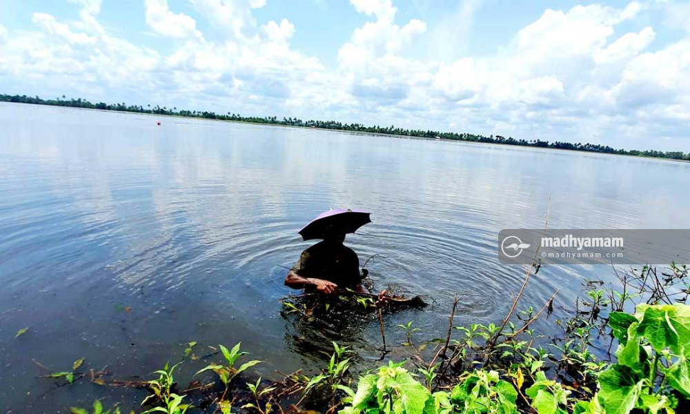 കോവിഡ് നാടും നഗരവും നിശ്ചലമാക്കുമ്പോൾ കുട്ടനാട്ടിലെ നെൽകർഷകർ വെള്ളം കയറ്റിയ വയലുകളിലെ അടിക്കാട് തെളിക്കുന്ന തിരക്കിലാണ്. കഴുത്തറ്റം വെള്ളത്തിൽ നിന്നാണ് ഈ ജോലി പൂർത്തിയാക്കുന്നത്. വെള്ളമിറക്കിയാൽ വയലൊരുക്കി വിത്ത് വിതക്കലും വരും ദിവസങ്ങളിൽ നടക്കും. പ്രതിസന്ധികൾ തരണം ചെയ്ത് ഭക്ഷ്യസുരക്ഷക്ക് വേണ്ടി കൂടിയാണ് കർഷകരുടെ ഈ അധ്വാനം ഫോട്ടോ: ബിമൽ തമ്പി
