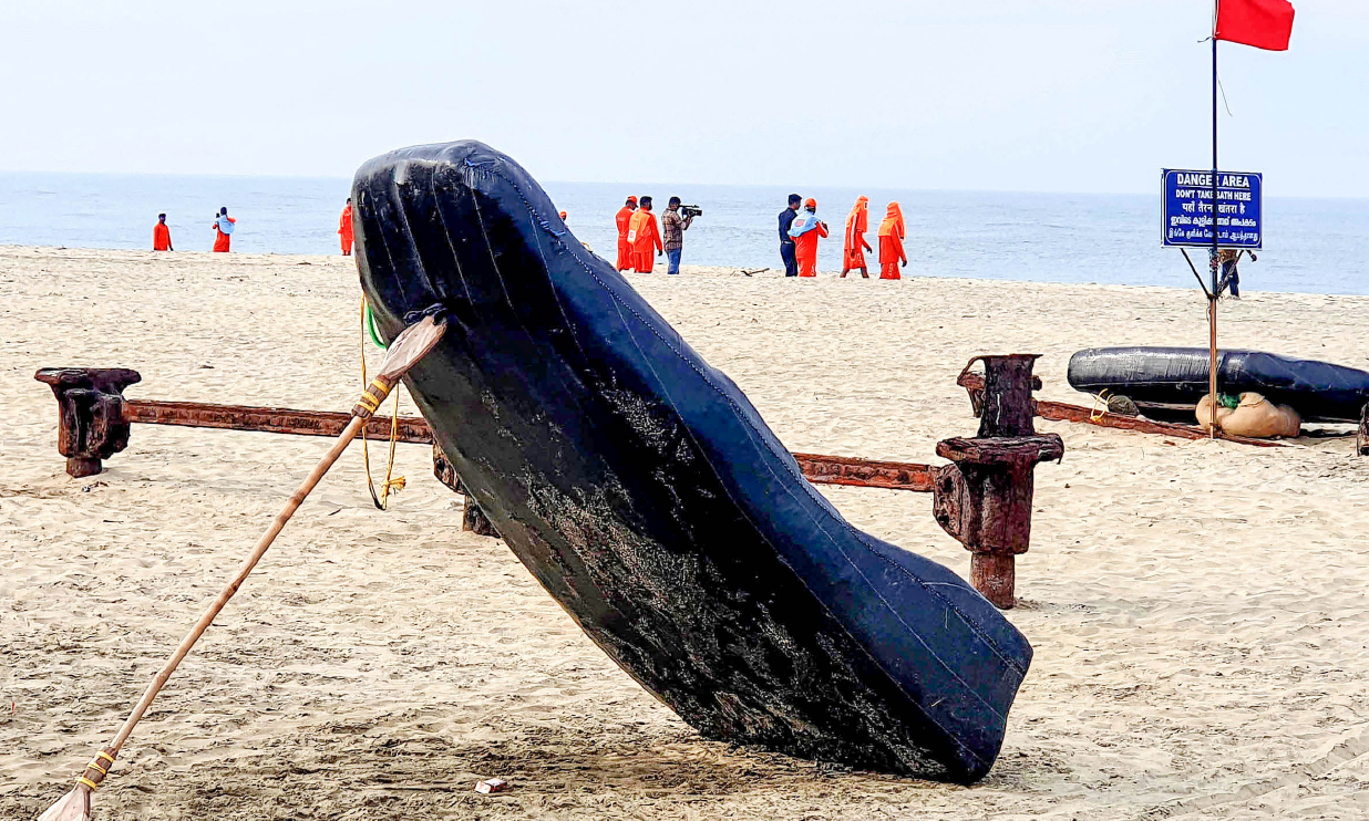 ബു​റെ​വി ചു​ഴ​ലി​ക്കാ​റ്റ് ഭീ​ഷ​ണി​യെ തു​ട​ർ​ന്ന് ദേ​ശീ​യ സു​ര​ക്ഷ​സേ​ന ആ​ല​പ്പു​ഴ തീ​ര​ത്ത് നി​ല​യു​റ​പ്പി​ച്ച​പ്പോ​ൾ. മ​ത്സ്യ​ബ​ന്ധ​ന നി​രോ​ധ​നം കാ​ര​ണം ക​ര​യി​ൽ ക​യ​റ്റി​െ​വ​ച്ച പൊ​ന്തു​വ​ള്ള​വും കാ​ണാം