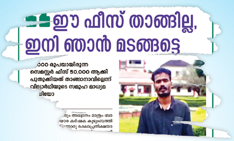 ‘ടി.സി വാങ്ങിയ വിദ്യാർഥിയെ തിരികെ എത്തിക്കും’ എന്ന് കൃഷിമന്ത്രി പി. പ്രസാദ് പ്രഖ്യാപിച്ചു. ഇതൊരു താൽക്കാലിക പ്രശ്നപരിഹാര ശ്രമം മാത്രമാണ്. അർജുൻ എന്ന വിദ്യാർഥിയുടെ പ്രശ്നം പരിഹരിച്ചാൽ തീരുന്നതാണോ ഈ അനീതി? ‘‘ഇത് എന്റെ മാത്രം പ്രശ്നമല്ല, ഫീസിളവ് എല്ലാവർക്കും ബാധകമാക്കണം. എനിക്ക് മാത്രമായി ഇളവ് വേണ്ട’’ എന്ന അർജുന്റെ പ്രതികരണം അധികാരികളുടെ നിലപാടിന് നേരെയുള്ള ഒന്നാന്തരം പ്രഹരമാണ്.