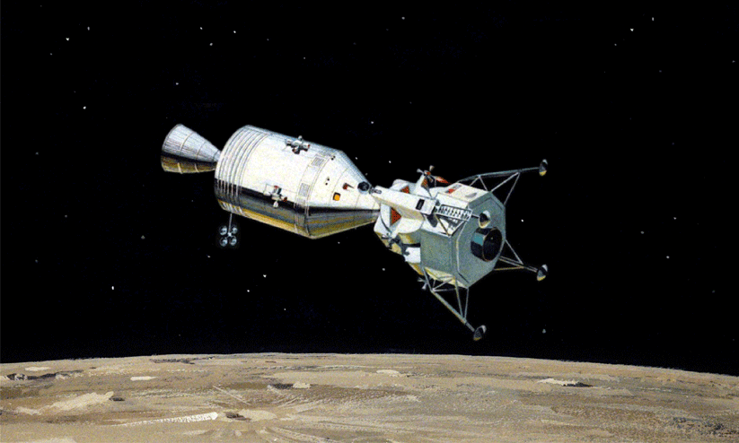 1967ലാണ് അപ്പോളോ യാത്രകൾ തുടങ്ങുന്നത്. അപ്പോളോ 1 പരീക്ഷണത്തിനിടയിൽ തീപിടിച്ച് ലക്ഷ്യം നേടാതെ മൂന്നുയാത്രികർ കൊല്ലപ്പെട്ടു. തുടർന്ന് അപ്പോളോ 2, 3, 4 എന്നിവയിൽ മനുഷ്യർ കയറിയിരുന്നില്ല. 1969 ജൂലൈ 16ന് ഫ്ലോറിഡയിൽനിന്നാണ് അപ്പോളോ 11 വിക്ഷേപിക്കപ്പെട്ടത്. യാത്രികരായി നീൽ ആംസ്ട്രോങ്, എഡ്വിൻ ആൽഡ്രിൻ, മൈക്കൽ കോളിൻസ് എന്നിവർ. ആംസ്ട്രോങ്, ആൽഡ്രിൻ എന്നിവർ ചന്ദ്രനിൽ കാലുകുത്തി. കൊളംബിയ എന്ന നിയന്ത്രണ പേടകത്തിൽ ഈ സമയം കോളിൻസ് ചന്ദ്രനെ പ്രദക്ഷിണംവെച്ചുകൊണ്ടിരുന്നു. ജൂലൈ 24ന് മൂവരും ഭൂമിയിൽ തിരിച്ചെത്തി. അപ്പോളോ 17ഓടുകൂടിയാണ് ഈ പദ്ധതിക്ക് യു.എസ് വിരാമമിട്ടത്.