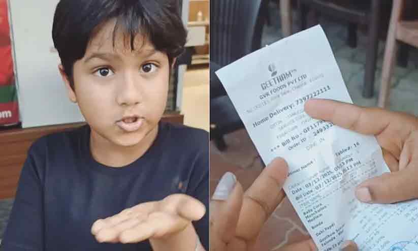 text_fieldsചെന്നൈയിലെ റസ്റ്റാറന്റിൽ ഭക്ഷണം കഴിച്ചപ്പോൾ കിട്ടിയ ബില്ല് കണ്ട് കണ്ണുതള്ളിയിരിക്കുന്ന എൻ.ആർ.ഐ ബാലനാണ് ഇപ്പോൾ ഇന്റർനെറ്റിലെ സംസാര വിഷയം. 2025 ഡിസംബർ ഏഴിന് ഗീതം റസ്റ്റാറന്റിലാണ് സംഭവം. അമ്മക്കൊപ്പം ഭക്ഷണം കഴിക്കാനെത്തിയതായിരുന്നു കുട്ടി. ഉച്ചഭക്ഷണം കഴിച്ചതിനു ശേഷം ബില്ല് പേ ചെയ്തപ്പോഴാണ് കുട്ടി ഞെട്ടിയത്. തുടർന്ന് തങ്ങൾ കഴിഞ്ഞ ഭക്ഷണം എന്തൊക്കെയാണെന്നും അതിന് എന്തുവില വരുമെന്നും തിരയുകയാണ് കുട്ടി.