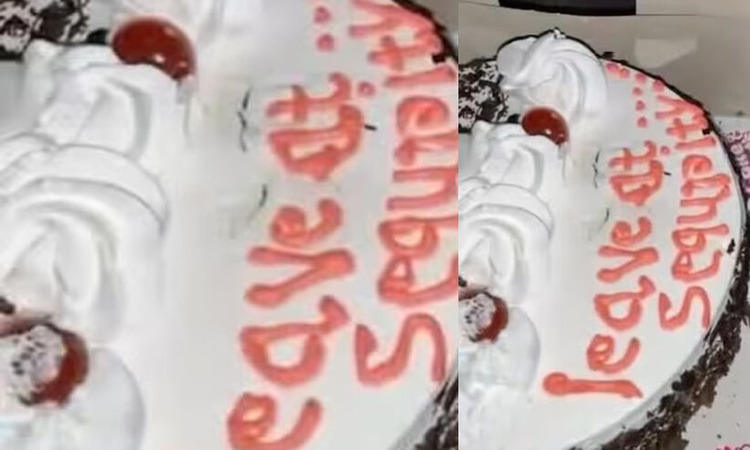 date_range 21 Dec 2025 8:30 AM GMT'ലീവ് അറ്റ് സെക്യൂരിറ്റി'; ഓൺലൈനായി ഓർഡർ ചെയ്ത ബർത് ഡേ കേക്കിൽ എഴുതി നൽകിയത് ഡെലിവറി ഏജന്റിന് നൽകിയ നിർദേശം; വൈറൽ വിഡിയോ